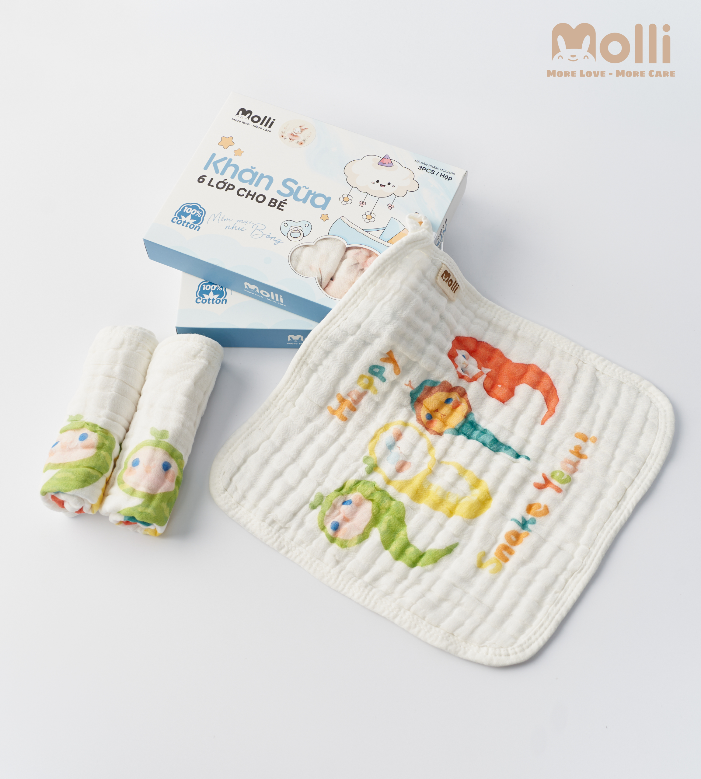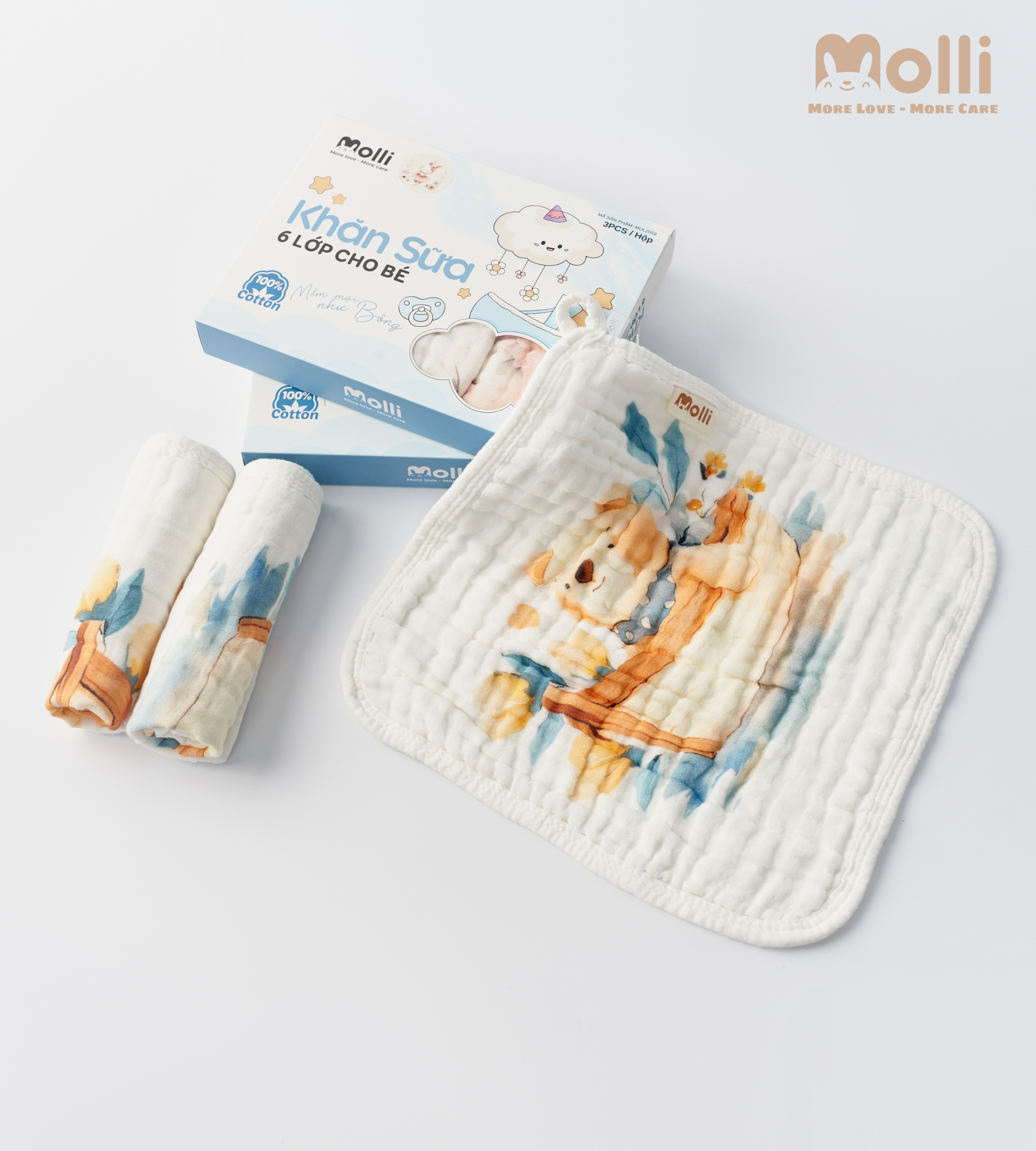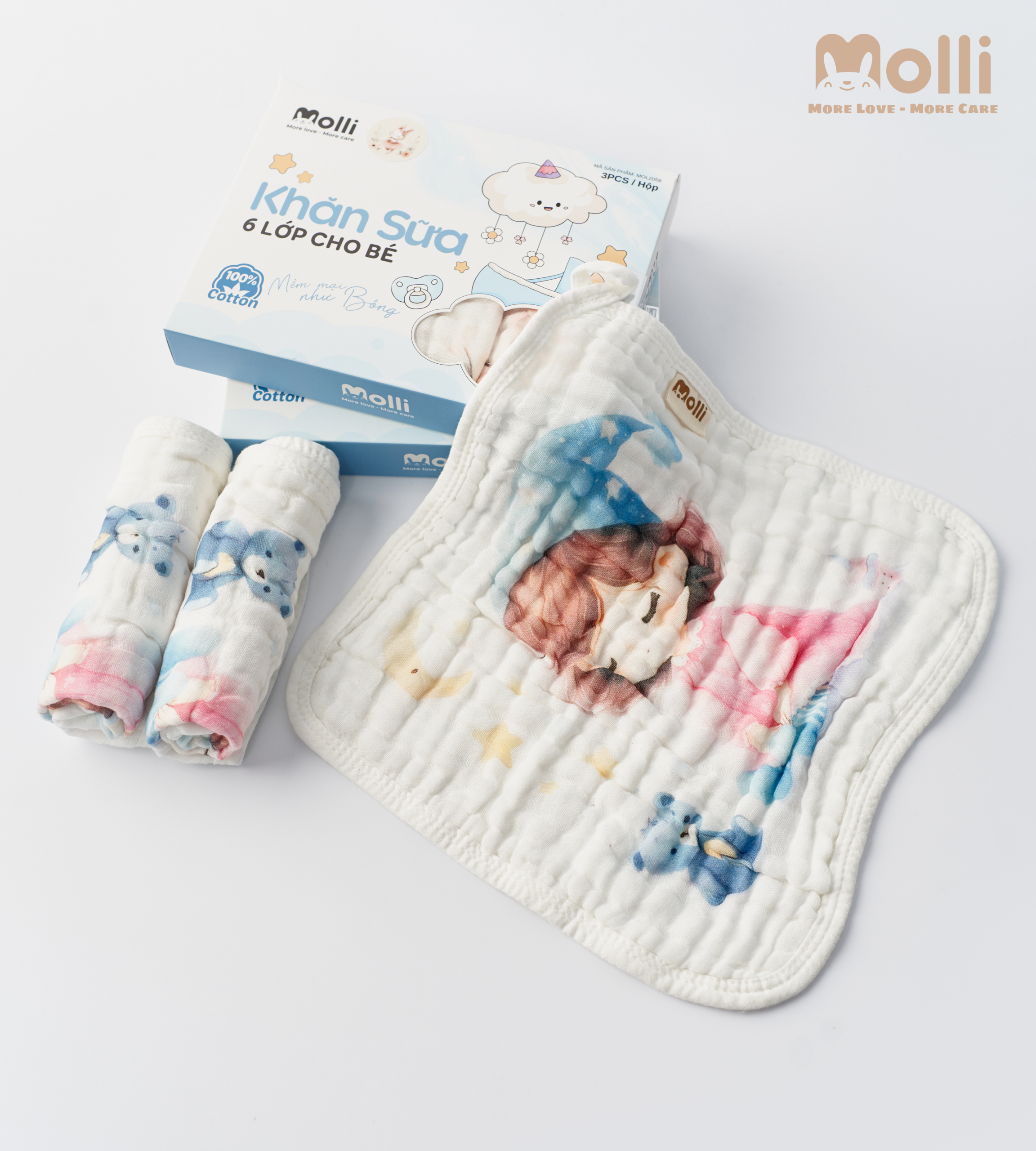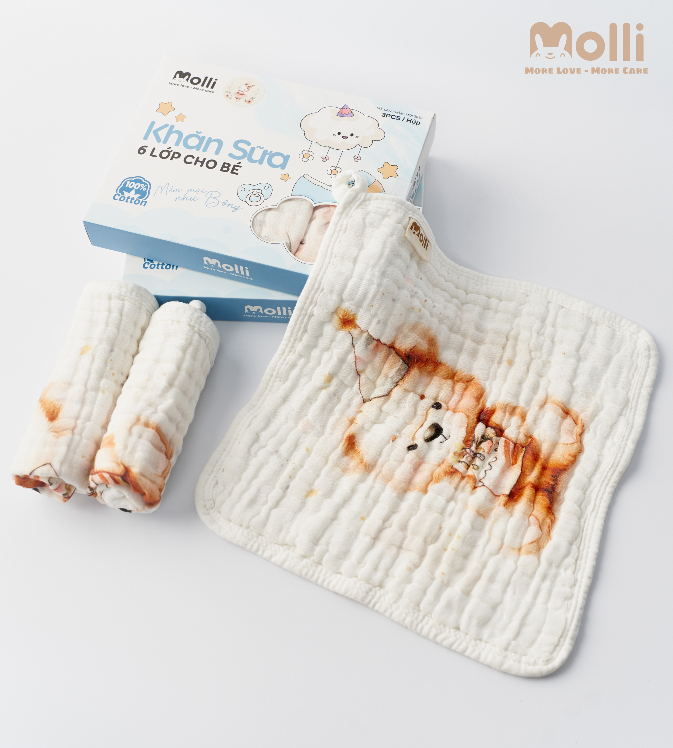 Hộp 3 Chiếc Khăn Sữa 6 Lớp 100% Cotton Molli