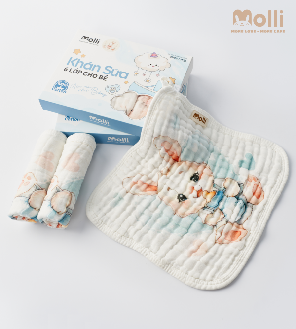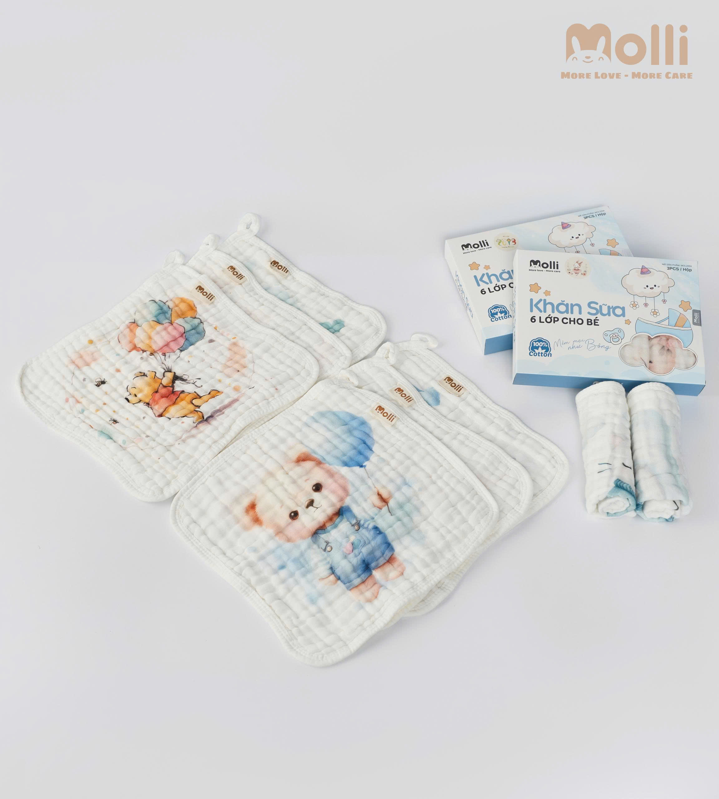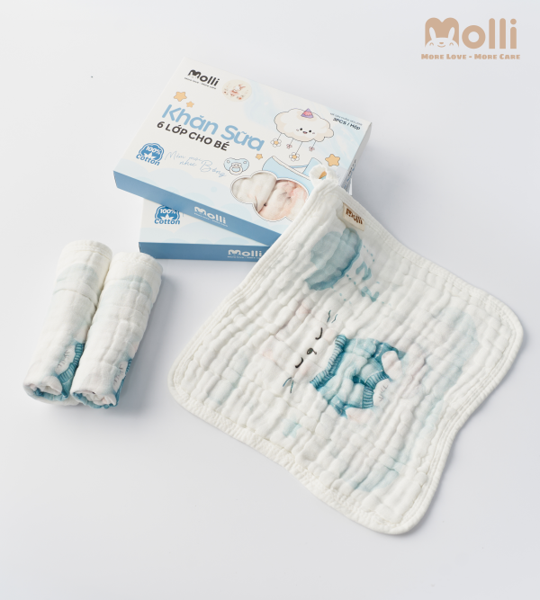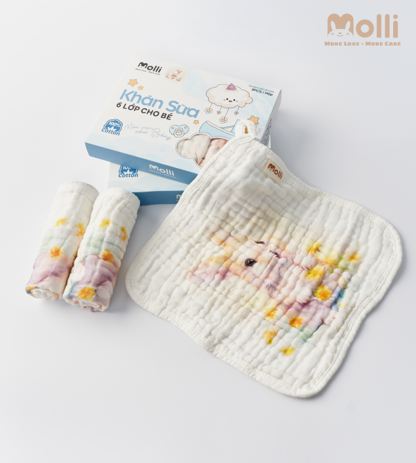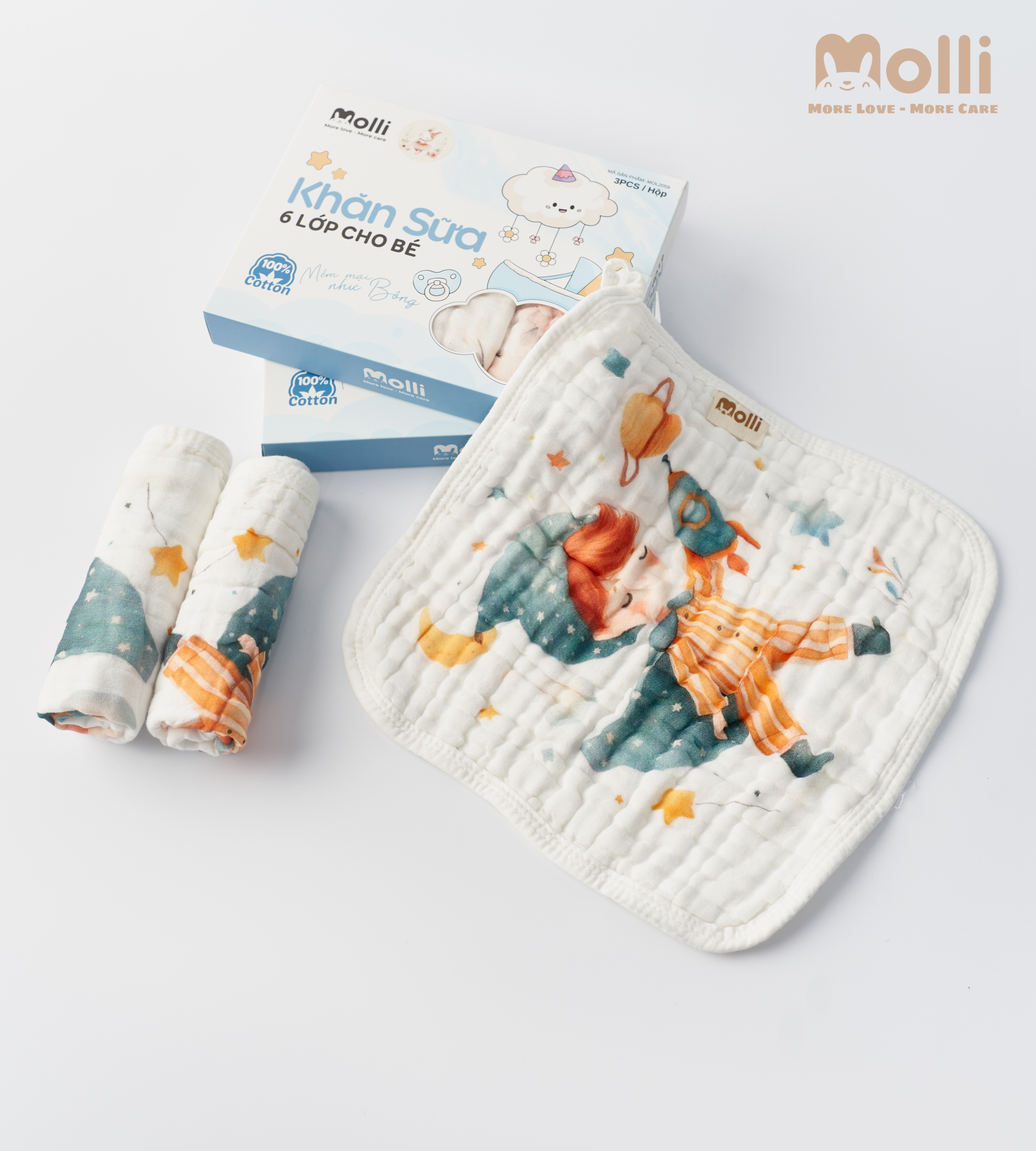 Hộp 3 Chiếc Khăn Sữa 6 Lớp 100% Cotton Molli